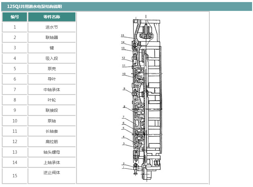 125QJ井用潛水(shuǐ)電泵性能(néng)參數