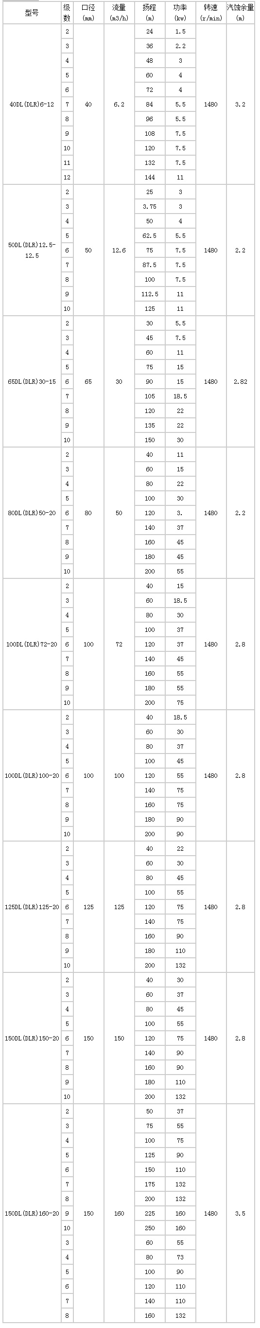 技術參數(shu): DL(DLR)型立式離心多級(jí)泵