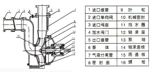 ZW型(xing)自吸式無堵(dǔ)塞排污泵結(jie)構圖: