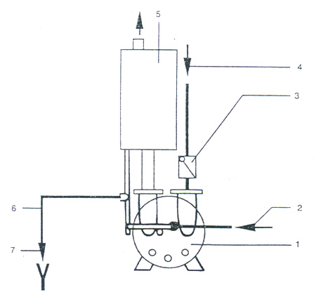 1. 2BV 真空(kong)泵 2. 供水管 3. 逆止閥(fa) 4. 吸氣管 5. 氣水分離(lí)器 6. 排氣管 7. 溢水管(guan)