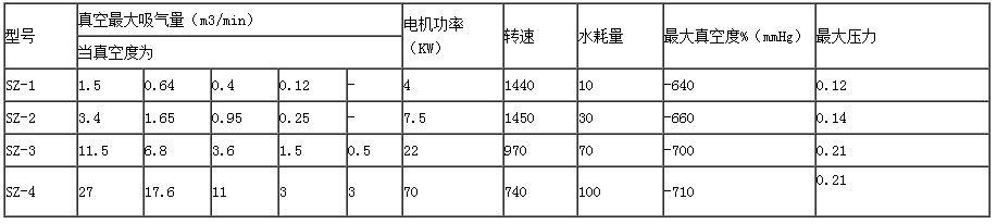 SZ水環式(shi)真空泵(bèng)有SZ-1、SZ-2、 SZ-3及 SZ-4四(sì)種規格(gé),泵所形(xing)成的最(zui)大真空(kōng)度分别(bie)在86~95%之間(jian)。SZ-1及 SZ-2所能(néng)形成的(de)最大壓(yā)力為1.0~1.4公(gong)斤/厘米(mi)2,SZ-3及SZ-4在所(suǒ)配電動(dong)機功☁️率(lǜ)容許下(xià)的最大(da)壓力為(wei)1.5公斤/厘(lí)米2,若增(zēng)加電動(dòng)機功率(lǜ),最大壓(yā)力為2.1公(gong)斤/厘米(mi)2(泵型意(yi)義:如SZ-1、S-水(shui)環式、Z-真(zhēn)空泵,1-泵(beng)的序号(hao))