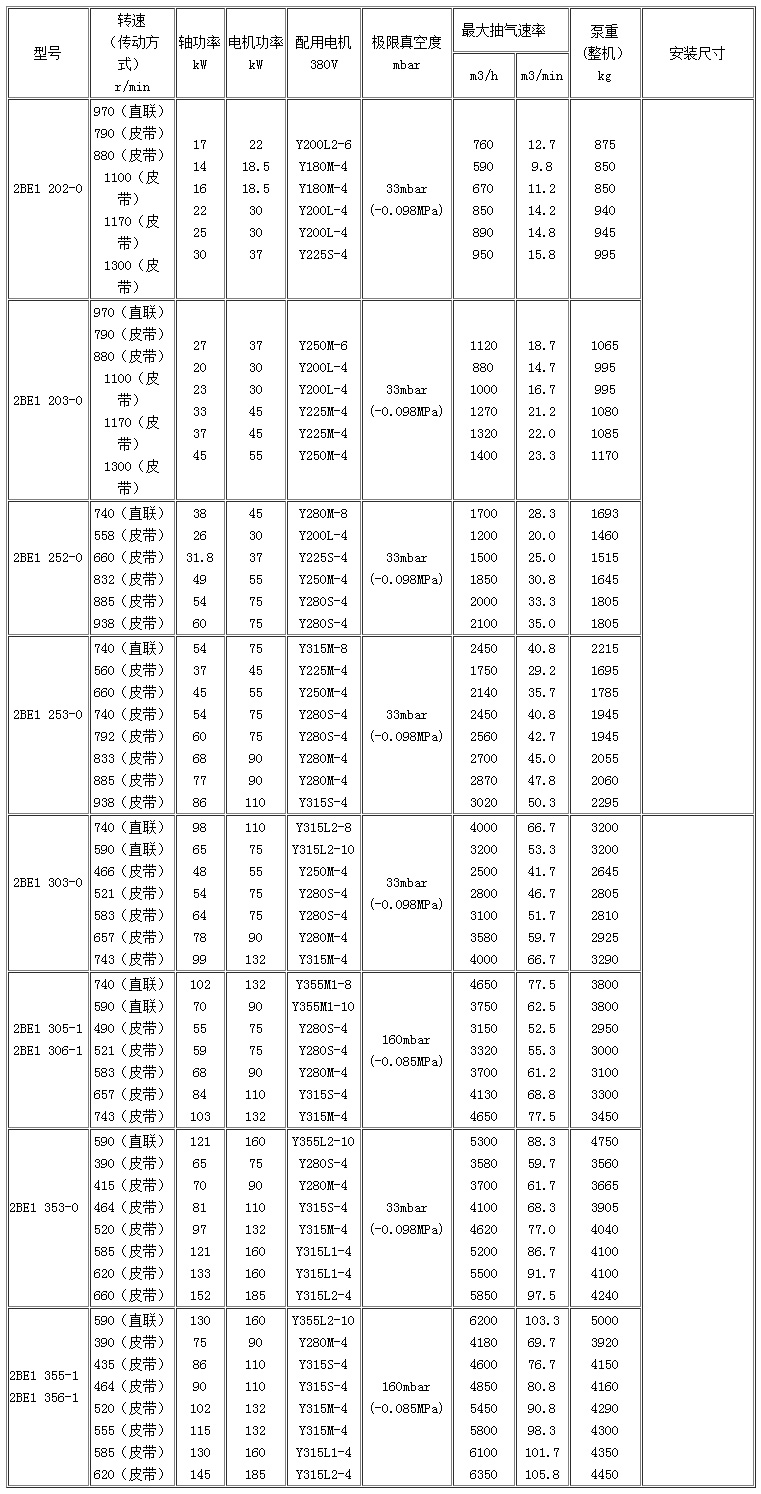 2BE系列水環式(shi)真空泵技術參數(shù):