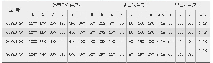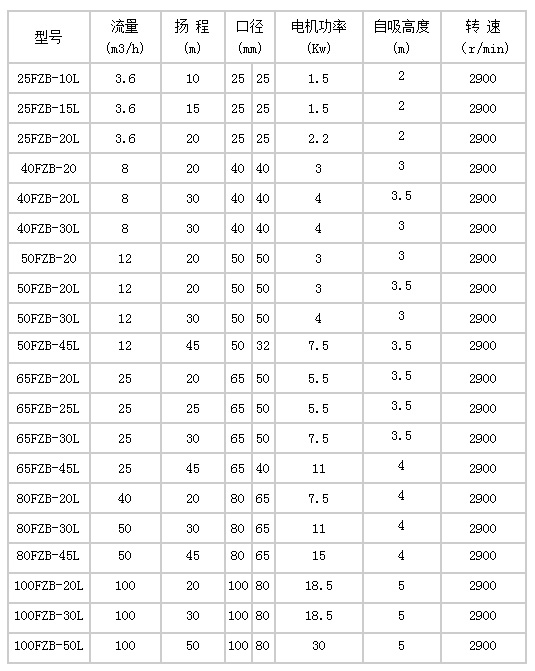 技術參(cān)數: FZB型氟塑(sù)料自吸化(hua)工泵